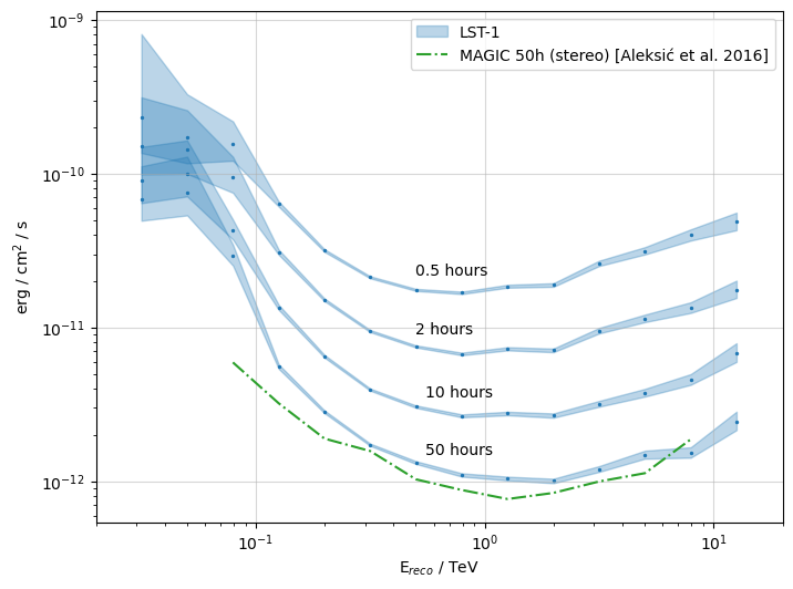 computed using observations of the Crab Nebula, assuming the spectrum reported by MAGIC in ref(2).